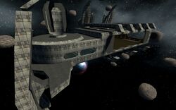 Station is a fixed station within the Pegasus galaxy. It features a Stargate, as well as a large building area in the form of a docking bay, with retractable doors.